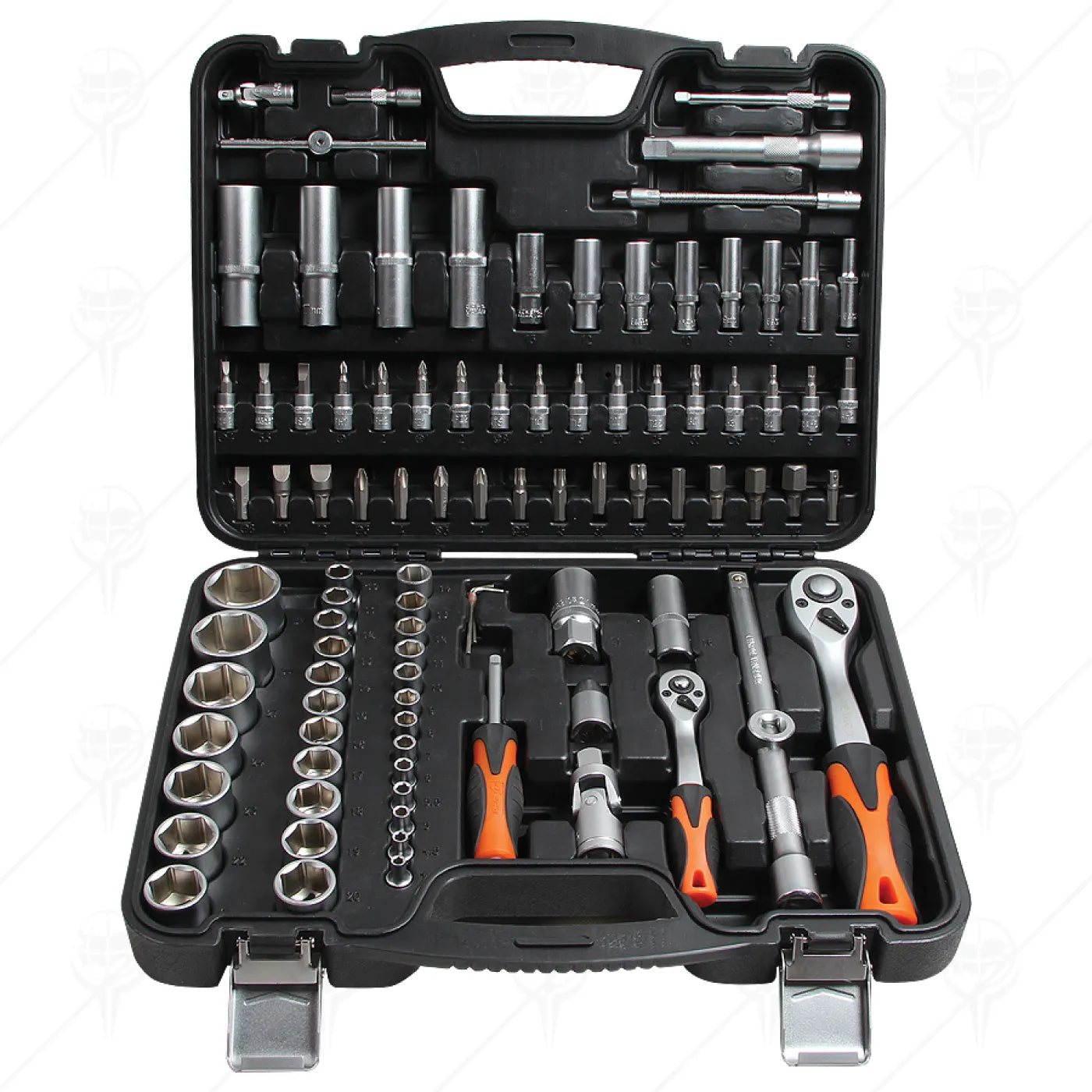 Пълен и практичен комплект гедоре, подходящ за автомобилни ремонти, монтажни дейности и работа в сервиз или домашна работилница. Съдържа вложки и аксесоари с размери 1/2” и 1/4”, подредени в удобен и здрав куфар за лесно съхранение и пренасяне.